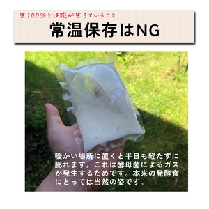 原材料は、白山麓の米と糀だけです。加熱処理もしていないため常温の場所に置いておくと、写真のように膨れます。活きた発酵で発生する炭酸ガスによるものです。「純生」とは発酵をそのまま活かすことで、常温保存できるよう加熱処理したり添加物まみれの甘酒とは全く違います。