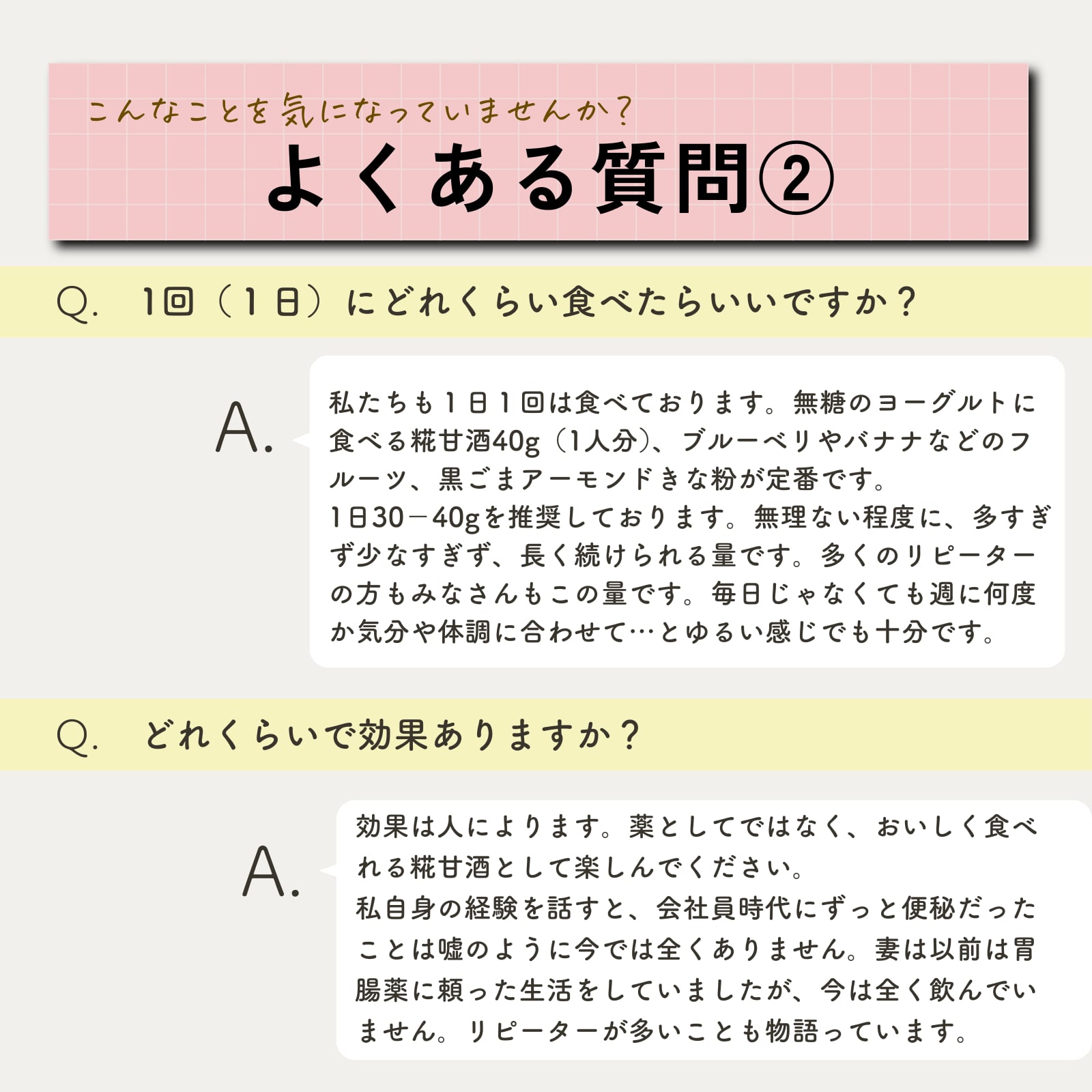 他人様に言うほどでもないけど、私の中ではモヤモヤと抱えていたことが、少しずつ取れて解放されていく感覚。そんな感覚を体験したからこそ生まれたのが「食べる糀甘酒」です。
